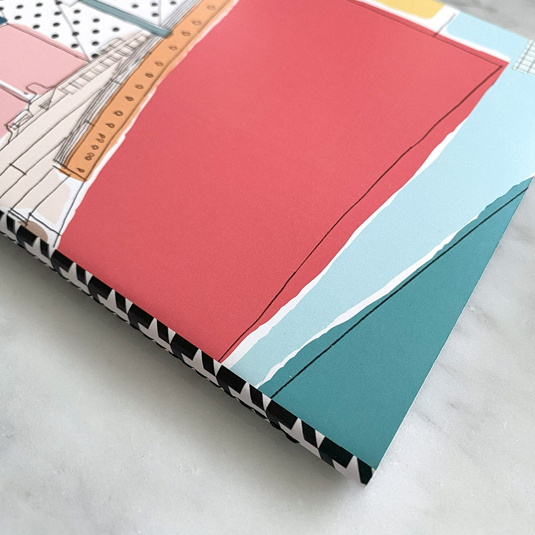 Softcover A5 notebook with an original illustration of Titanic. The notebook has a machine sewn spine, rounded corners and a luxe cover which includes a bright pop of colour on the inside.