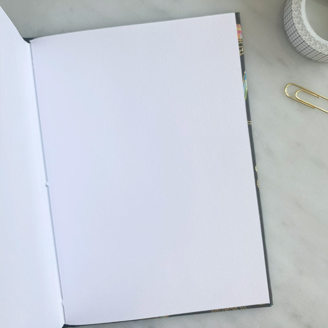 This handmade notebook includes 60 plain white pages of 80gsm paper; perfect for to-do lists and quick notes. This notebook is lay flat and has been bound using waxed linen thread.