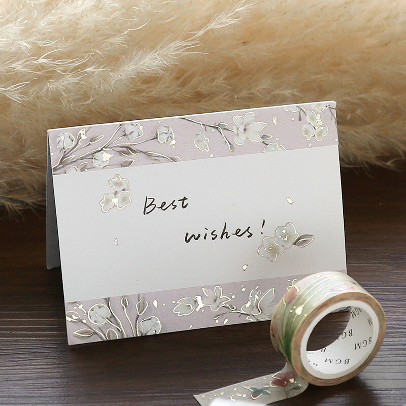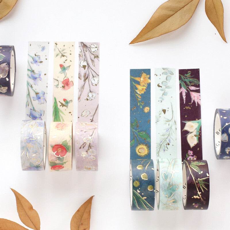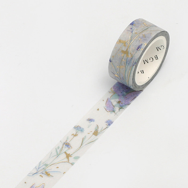 Washi tape with a very delicate floral pattern, including Lavender and gold foil accents.