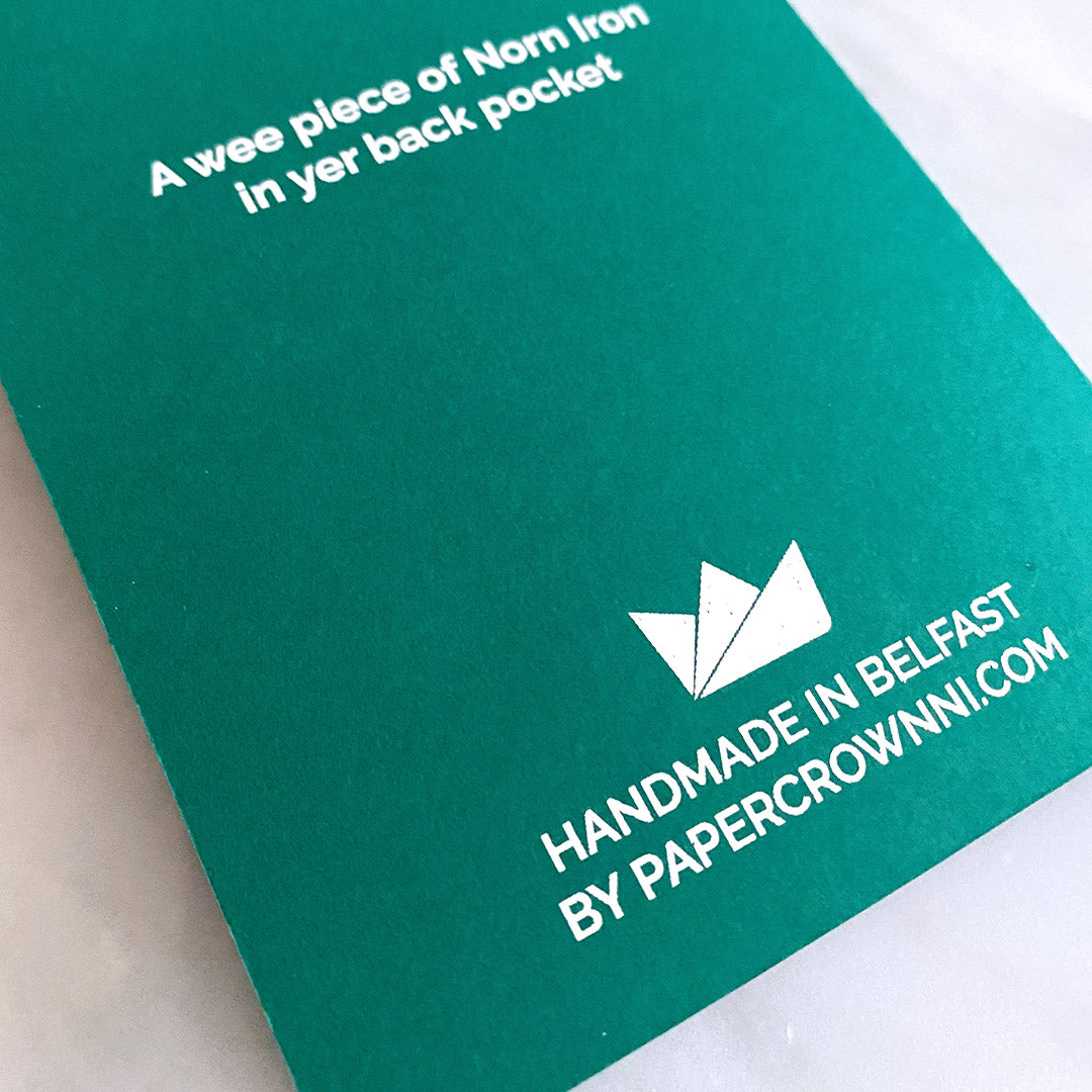Can be customised with a special message on the reverse (by replacing 'A wee piece of Norn Iron in yer back pocket', and comes with an optional gift box.