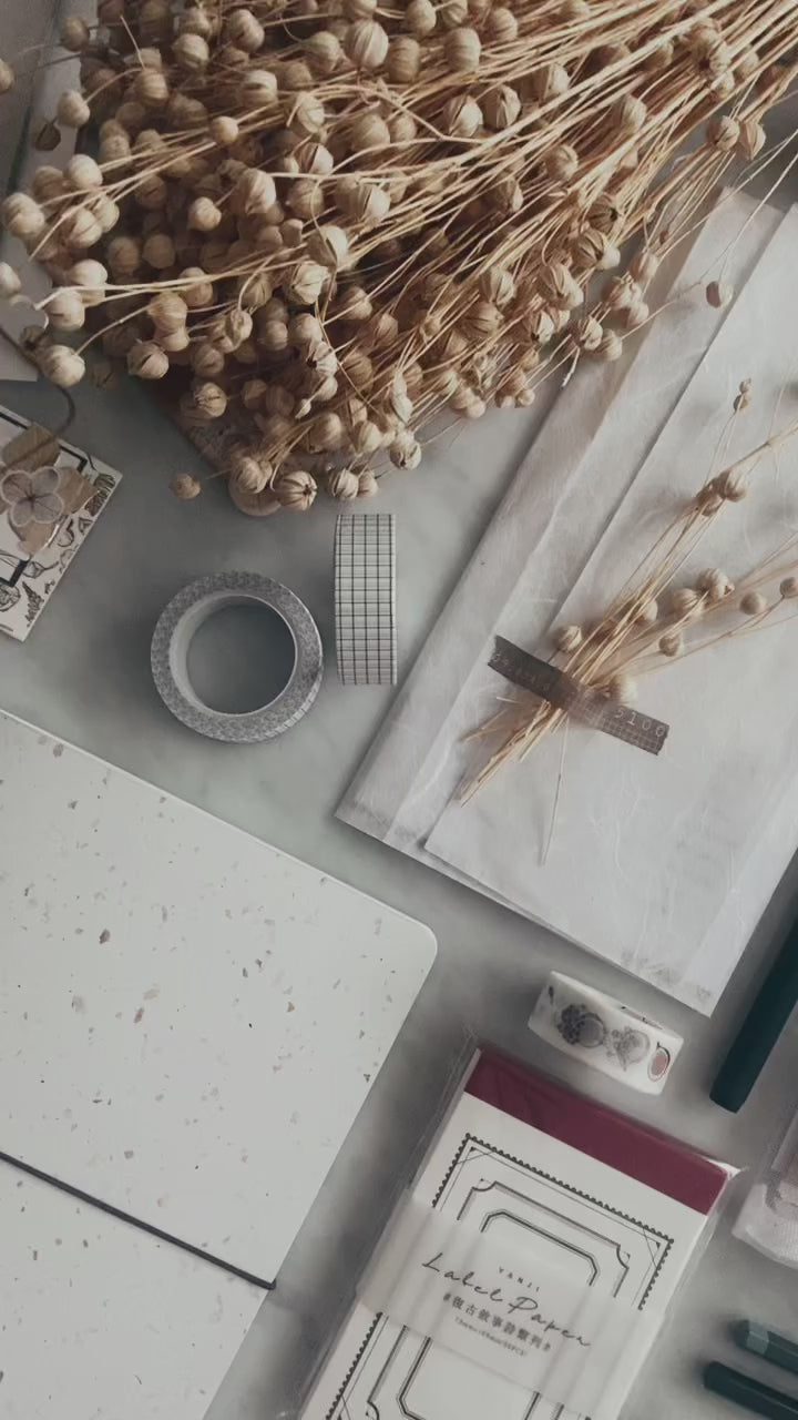 - a bundle of stickers (including Japanese and Scandinavian brands), wrapped in Mulberry paper with dried flax stems. We've included dried flax because it's so symbolic in terms of the linen industry in Northern Ireland but incorporating dried flowers into your journal spreads will completely elevate them. Try it and see!