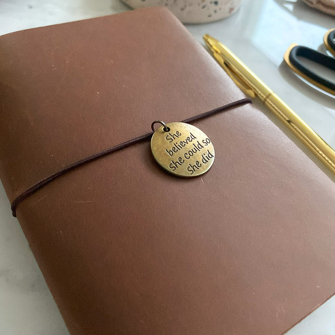 - a vintage style charm inscribed with an uplifting quote;