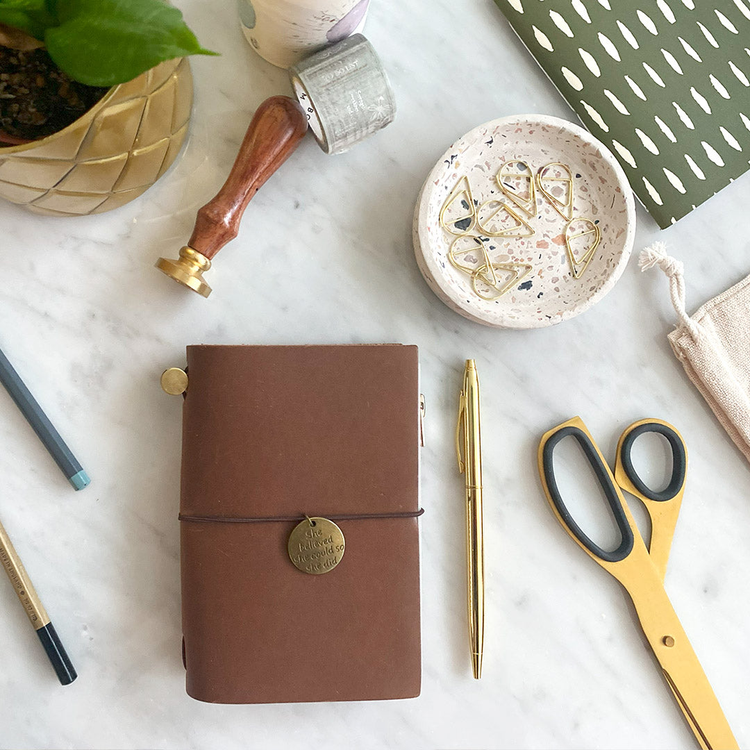 The simplicity of the Traveler’s Notebook is its greatest appeal, whether you pop it in your handbag for a coffee with clients, or place it on your desk for some to-do lists!