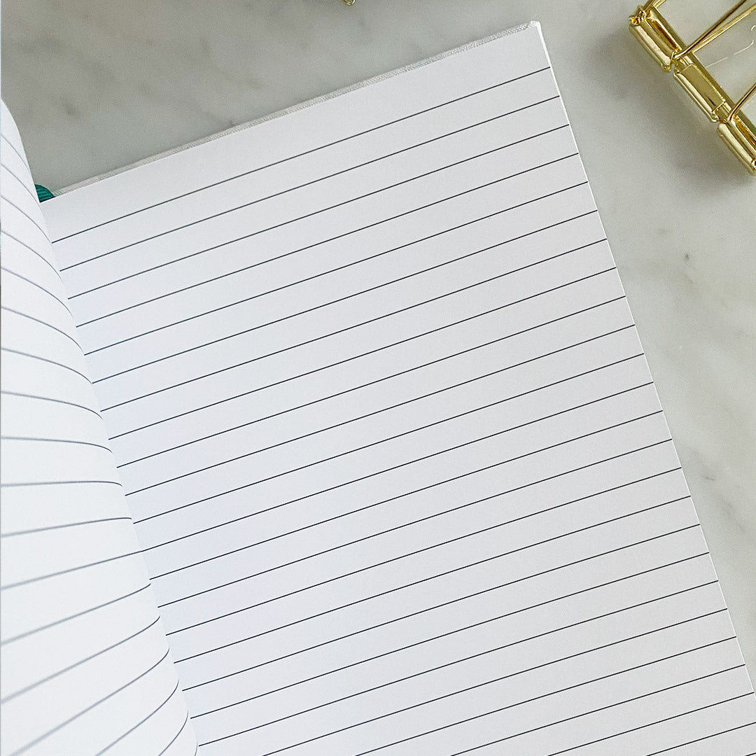 This handmade notebook includes 48 lined pages of 120gsm recycled paper; perfect for to-do lists and note-taking. This notebook is lay flat and has been bound using waxed linen thread. It is also fineliner and fountain pen friendly.