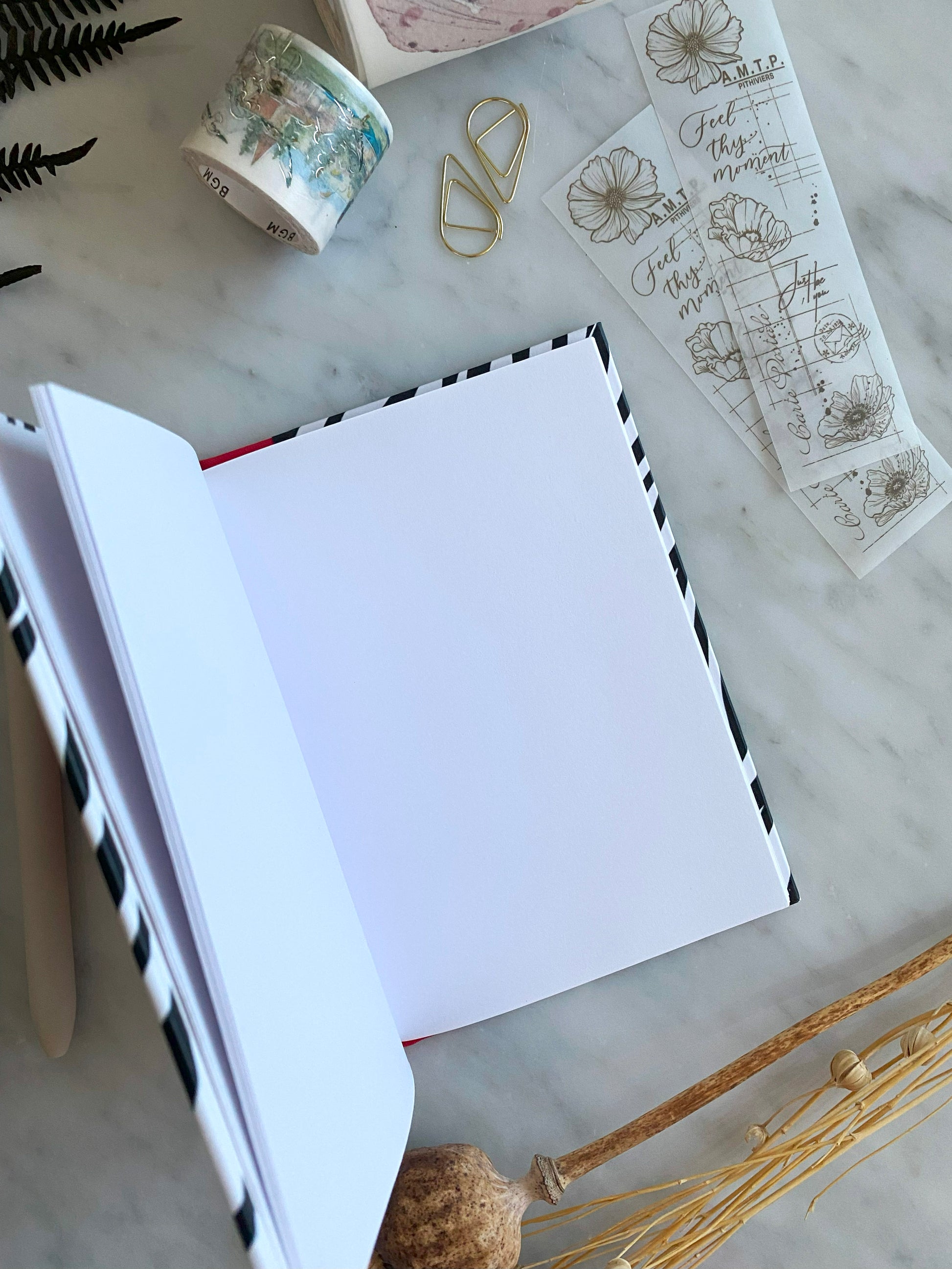 This handmade notebook includes 60 plain white pages of 80gsm paper; perfect for to-do lists and quick notes. This notebook is lay flat and has been bound using waxed linen thread.